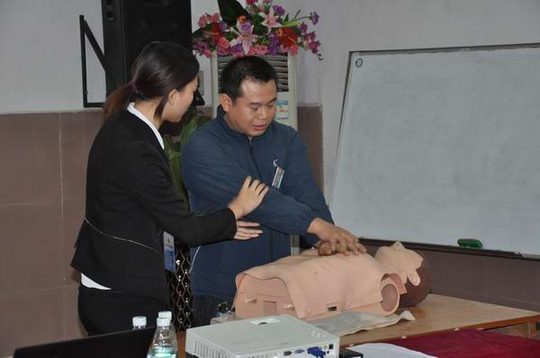 為了充分發揮本次培訓的作用,讓大家可以把理論與實踐相結合,并學以致用。特在現場抽出人員進行模擬學習心肺復蘇急救、人工呼吸、穴位按摩等。現場在活躍、愉快的氣氛中結束了本次的培訓講座。